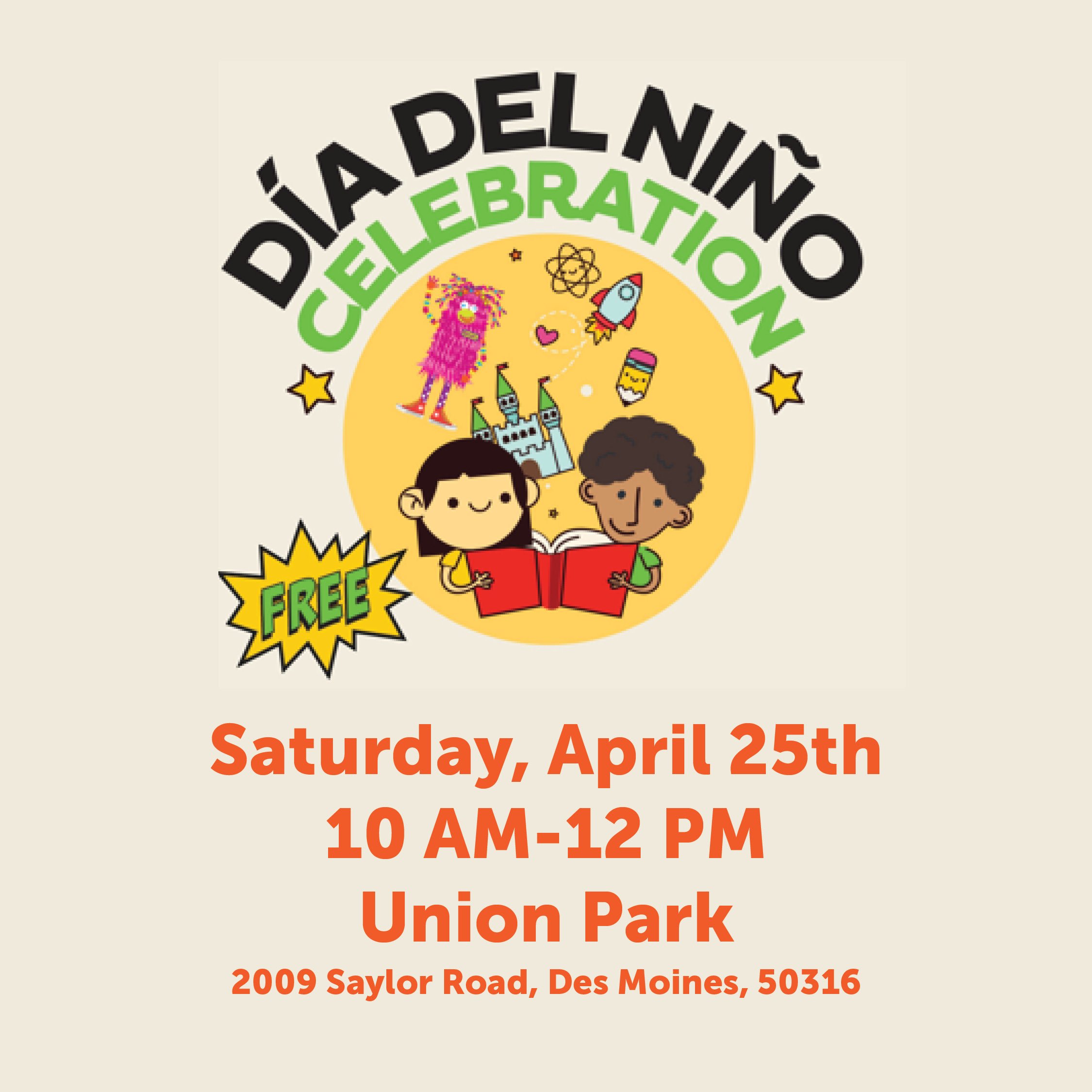 Día es una celebración internacional de la alegría que uno siente durante su niñez y primeras etapas de lectura. ¡Este año, Des Moines Public Library (la biblioteca) y tus socios comunitarios están celebrando juntos!